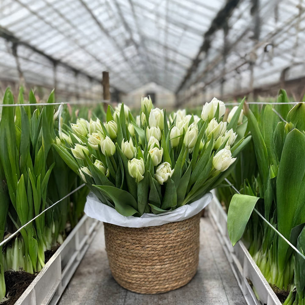 Мы рады предложить вам большой ассортимент продукции высокого качества. Благодаря нашему собственному производству, бесперебойным поставкам и наличию современного склада, мы можем поддерживать широкий выбор тюльпанов и других цветов на протяжении всего сезона.